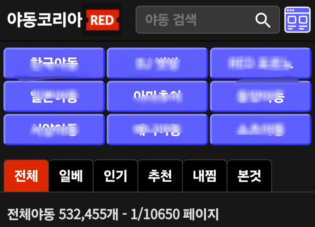 - BJ야동 및 아마추어 콘텐츠 중심.